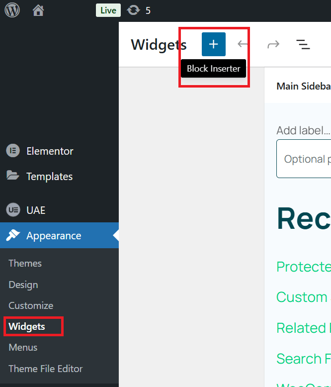 - Choose your preferred filter and add it to the Sidebar widget area and save it.